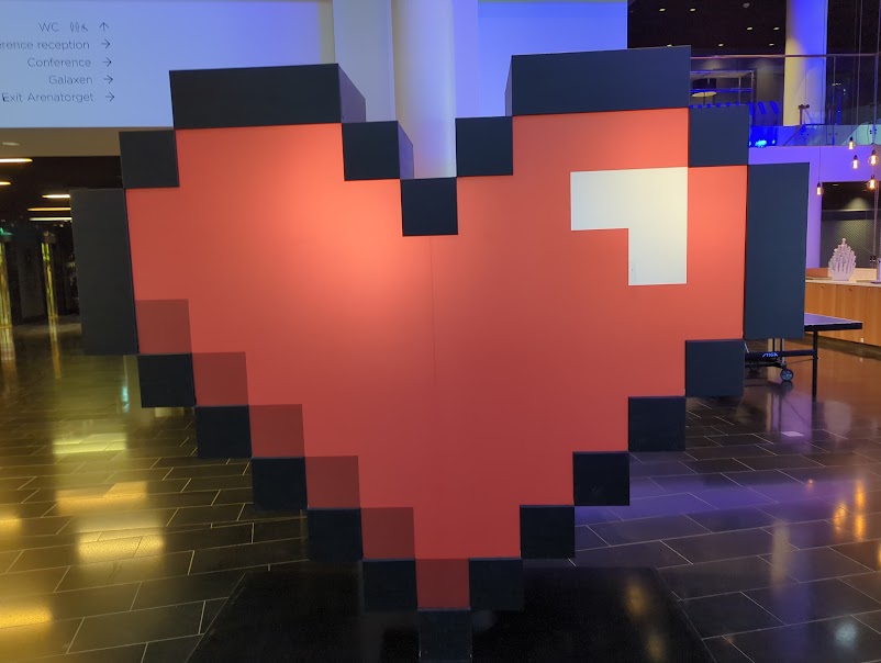 I booked the closest hotel I could find, which was Quality Hotel Globe, situated just a stone's throw from the Globen Arena. The hotel was okay, but I liked the fact that it was somewhat video game centric. There was a pixelated heart on display in the lobby, boasting about the video game exports to have come out of Stockholm in recent years. There were also a couple of rooms dedicated as "gamer" rooms, complete with gaming rigs, RGB lights, and the like.
